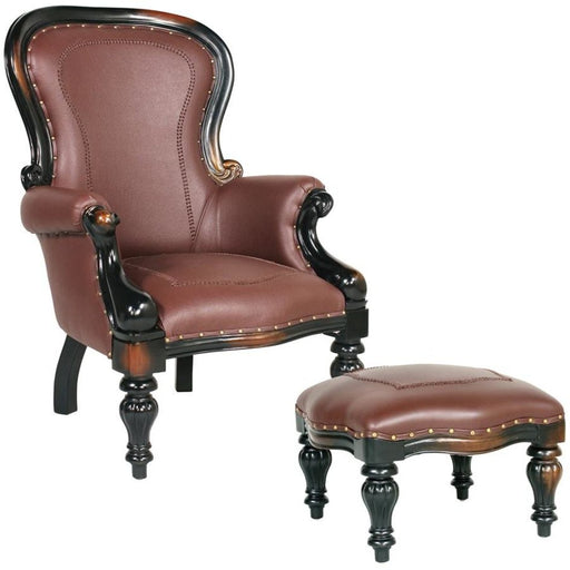 Design Toscano Victorian Rococo Faux Leather Wing Chair and Ottoman
