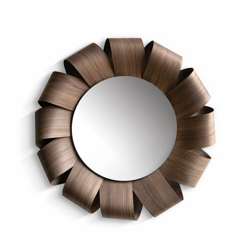 The Brisa mirror is a round wall mirror with a wooden flower-shaped frame, designed by Andrés Martínez for Nomon. The body is in natural walnut an...