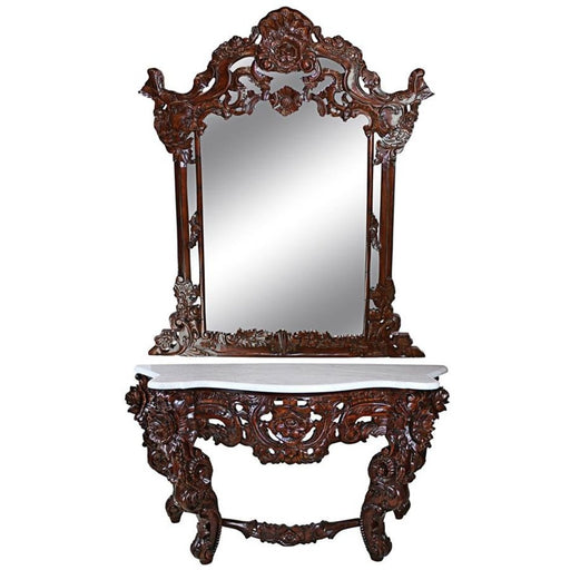 Design Toscano The Royal Baroque Marble-Topped Hardwood Console Table with Mirror